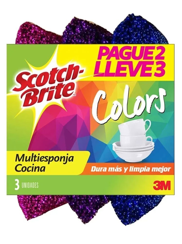 ESPONJA SCOTCH BRITE COLOR PAGUE 2 LLEVE 3 UND